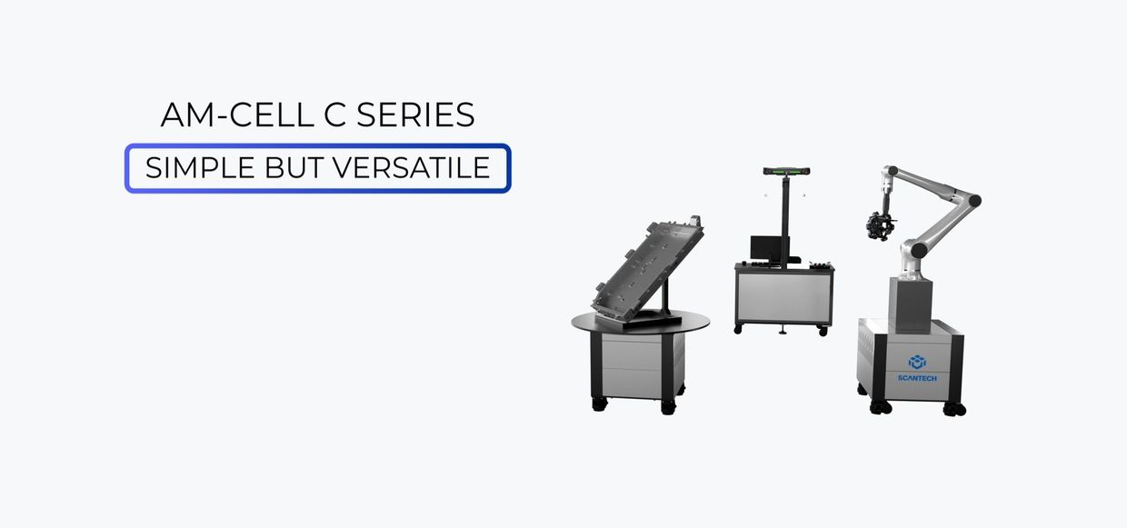The AM-CELL C series optical automated 3D measurement system, consisting of a robot, positioner, and a tracking station, is developed for efficient and automated inspection of medium-to-large-sized parts such as stamping, injection-molded, machined sheet metal, and cast parts. Designed with innovative modular units, it enables various layouts, flexible deployment, and multiple-positioner operations.