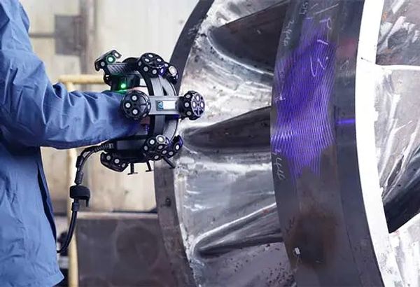 The TrackScan accurate 3D scanner can scan large objects efficiently, thanks to its large scanning area and dynamic tracking. It enables you to scan the whole hydro turbine to inspect blade geometries, distance, and angular position of individual blades and detect any defects or damages. High-tech 3D scanning hydro turbine can help to optimize its performance and efficiency.